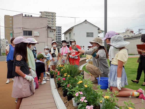 ・グリーンアドバイザーの方による指導のもと、公園の花壇づくり